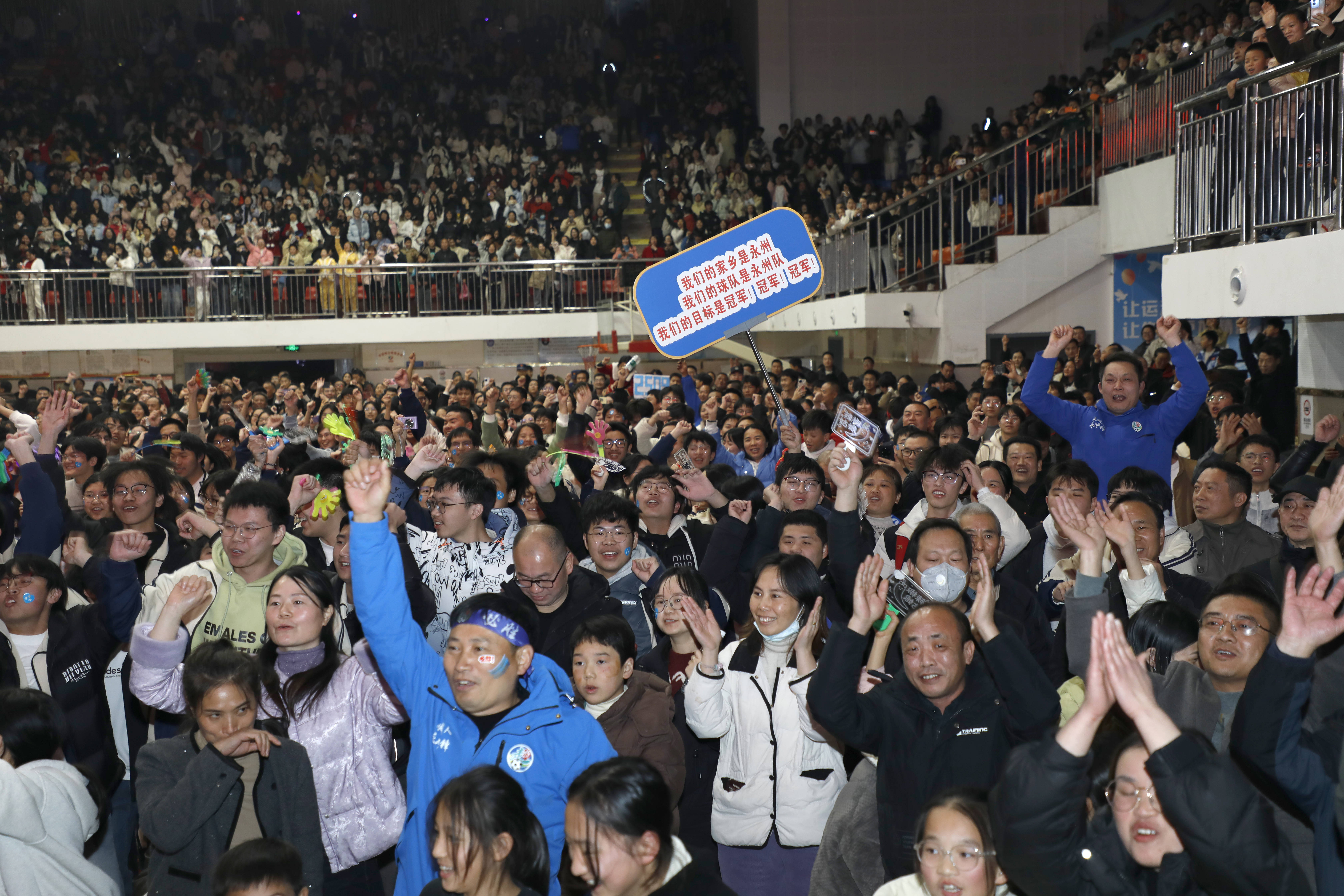 12月27日,球迷在湖南永州新田县文体中心观看比赛直播。 新华社发(钟伟锋摄)